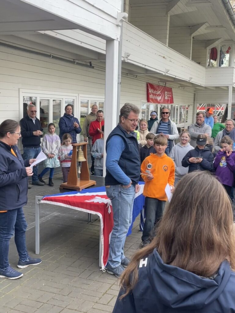 Ich habe mich sehr gefreut am Steinhuder Meer zu segeln, weil mir die Regatta im Herbst beim Nachbarverein so gut gefallen hat und die Winterpause so lang war. Endlich segeln und dann noch ein Wochenende Camping im VW-Bus alleine mit meinem Vater und um uns herum viele gute Freunde aus ganz Norddeutschland. Am ersten Tag war sehr viel Wind, so dass ich einmal sogar vollgelaufen bin. Ich bin richtig gut gesegelt, es gab jedoch ein paar Probleme bei der Wertung, die wir im Regattabüro klären mussten. Am zweiten Tag war leider nur Flaute und wir konnten die Wettfahrt nur auf einer verkürzten Bahn beenden. Ich konnte den dritten Platz erreichen und habe mich sehr gefreut, weil ich zusätzlich zu dem tollen Glaspokal auch noch Optimus die Möwe bekommen habe. Optimus hat seinen Platz zwischen meinen Pokalen bekommen. Neben dem dritten Platz ist noch der schicke orangene Regattapullover zu erwähnen, der mit Sicherheit einer meiner liebsten wird.